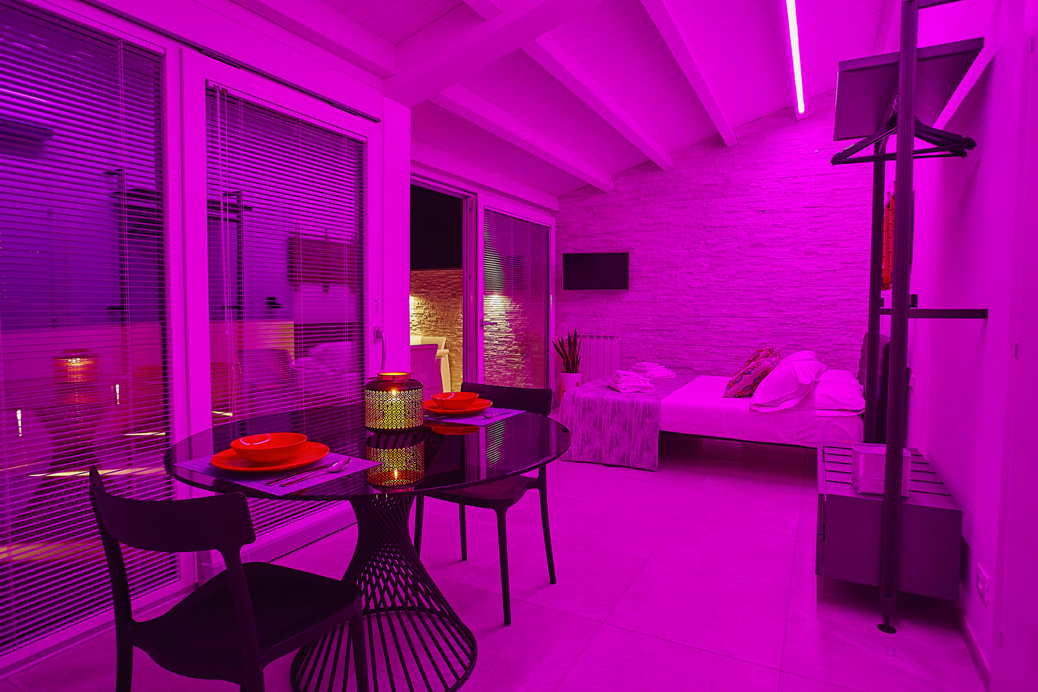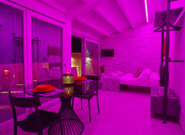 - Servizi: aria condizionata, asciugacapelli, bagno, biancheria, cassetta di sicurezza, cromoterapia, cucina, led emozionale in camera, tv satellitare, wi-fi gratuito